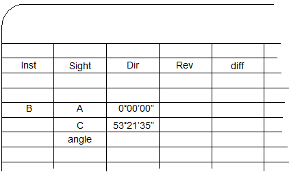 The value of the angle is the difference between the FS and BS readings. Compute and record it immediately after the FS reading is made. This is the direct angle. |