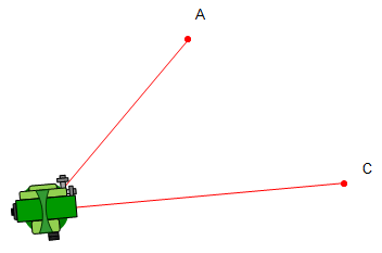 Step (4) Release the horizontal circle lock and rotate to point C in the direction of the angle (left in this case).