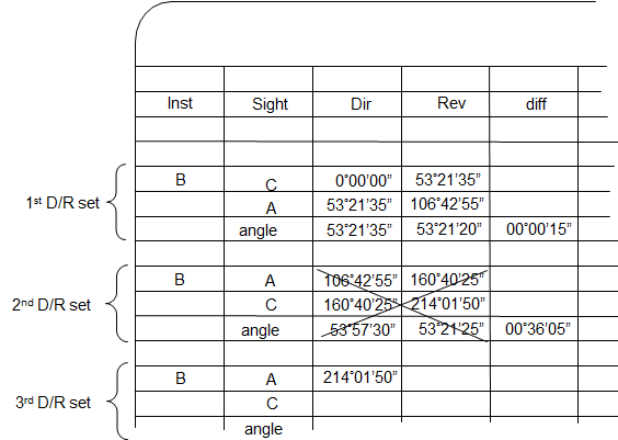 The process would be repeated for the number of D/R sets required. Successive direct and reverse angle sets should be relatively consistent taking into account random errors. |