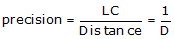 Traverse precision is a function of the linear closure and the total survey distance. The precision is stated as a relative value, usually as 1 unit of error per D units measured: