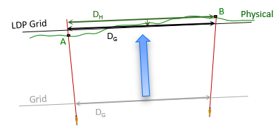On a carefully created LDP, grid and ground distances can be considered the same. There will be some distortion, but it will be much less than the typical distortion in an SPC or UTM system. This simplifies surveying measurements as well as mapping and GIS applications. For high accuracy needs, the remaining distortion can be compensated mathematically.