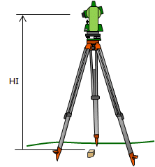 In this scenario the TSI is set up over a point whose elevation is known. The elevation must be transferred to the TSI by measuring the Height of the Instrument, HI, Figure F-3.